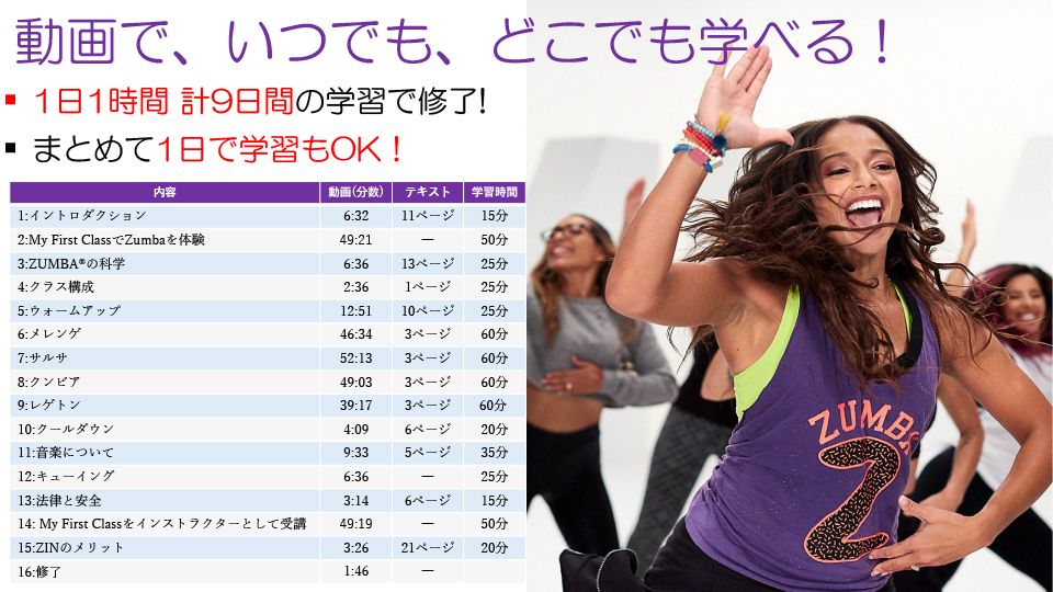 【リアル開催】は、日本各地の会場で行われており、【ライブ配信】では、ZOOMと呼ばれるオンラインプラットフォーム(TV電話のような仕組み)を介して行われます。(トレーニングコースは休憩を含め1日9時間もしくは、2日間各4時間)を完全受講いただきますと、ご受講から半年間ZUMBA®のインストラクターとして活動していただけます。直接講師から学ぶことができ、自分の動きをチェックしてもらいたい方、一人で学習を進めるのが苦手な方にはおすすめです!!
